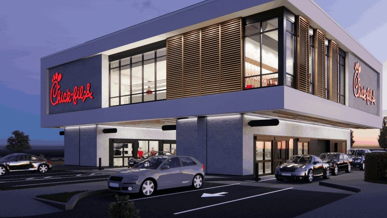 “The kitchen will also be twice as large as at typical Chick-fil-A locations and it will be above the drive-thru,” a company spokesperson said. “Orders will travel through an overhead conveyor belt connected with chutes that run down the sides.”